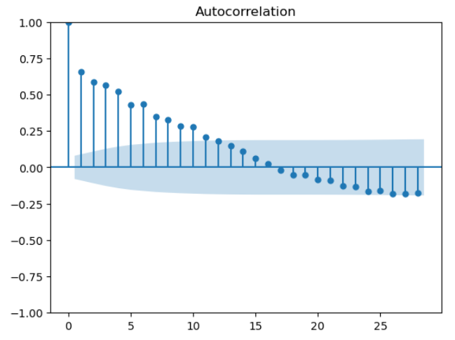 ACF ๋ํ์์ ํ๋์ ์์ ์์ ๋ค์ด์ค๋ ์์ฐจ(์ ๋จ์ ) - 1์ q๋ก ์ค์ ํ๋ค.
