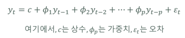 ํน์ ๋ณ์์ ๊ณผ๊ฑฐ ๊ด์ธก๊ฐ์ ์ ํ๊ฒฐํฉ์ผ๋ก ํด๋น ๋ณ์์ ๋ฏธ๋๊ฐ์ ์์ธกํ๋ ๋ชจํ์ด๋ค.