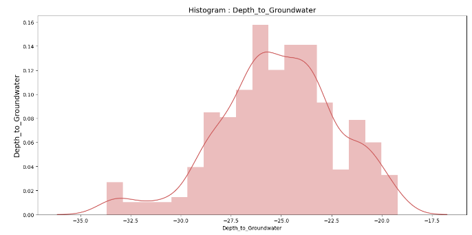 ์์ธกํ๊ณ ์ ํ๋ Depth_to_Groundwater ๋ณ์ ์๊ฐํํ์ฌ ๋ฐ์ดํฐ ๋ถํฌ ํ์ธ