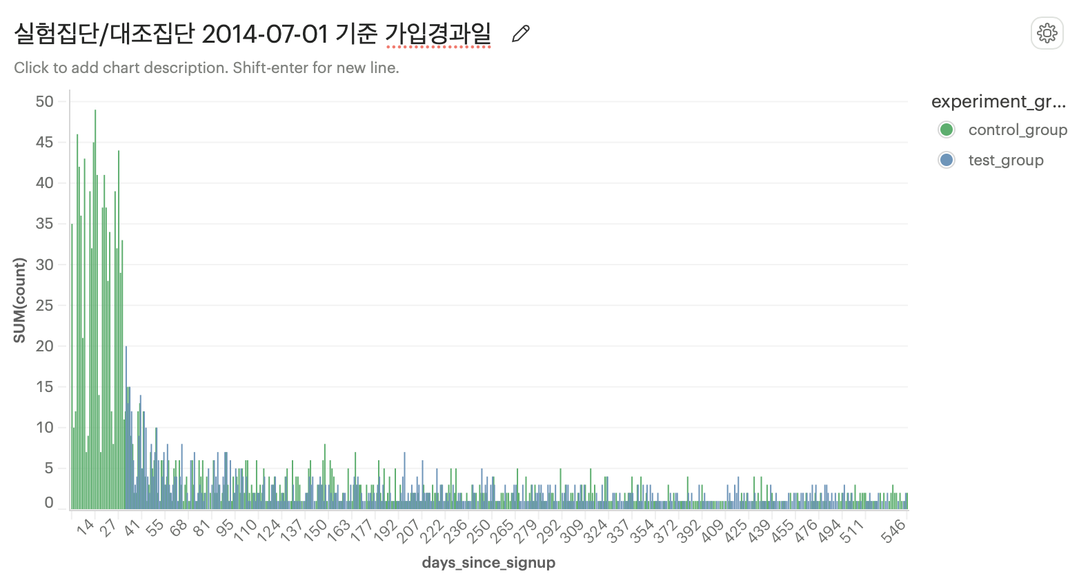 ๋ํ ์คํ์ด 6์ 1์ผ์๋ก ์์๋์๊ธฐ ๋๋ฌธ์ ๊ธฐ์กด ๊ฐ์ ์๋ค์ ๋์์ผ๋ก ์คํ์ ์งํํ๊ธฐ ์ํด ๊ฐ์ ์ผ์ 5์ 1์ผ ์ด์ ์ผ๋ก ์ถ๋ ค A/B test๋ฅผ ์ฌํด์ํด๋ณด๊ฒ ์ต๋๋ค.
