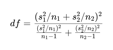 /(POWER(e.variance / e.users, 2) / (e.users - 1) + POWER(e.control_variance / e.control_users, 2) / (e.control_users - 1)), 2) AS degrees_of_freedom